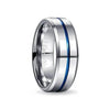 Tungsten Carbide Brushed Silver Ring  with Polished Blue Groove and Polished Silver Beveled Edge. Polished Blue Inner. NO ENGRAVING