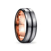 Tungsten Carbide Polished Silver Ring with Beveled Edge and Brushed Black Inlay. Polished Silver Inner.