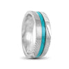 Gorgeous 8mm Tungsten Ring forged in a gorgeous wood grain pattern to have a damascus steel look. Enhanced with sandalwood inlay.